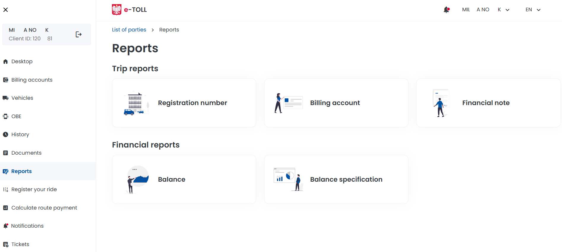 After logging into your Online Customer Account (OCA), you can easily check and download reports on toll road transits in Poland. The reports will help you to better plan your transits, account for costs and ensure transparency in your e-TOLL billing.